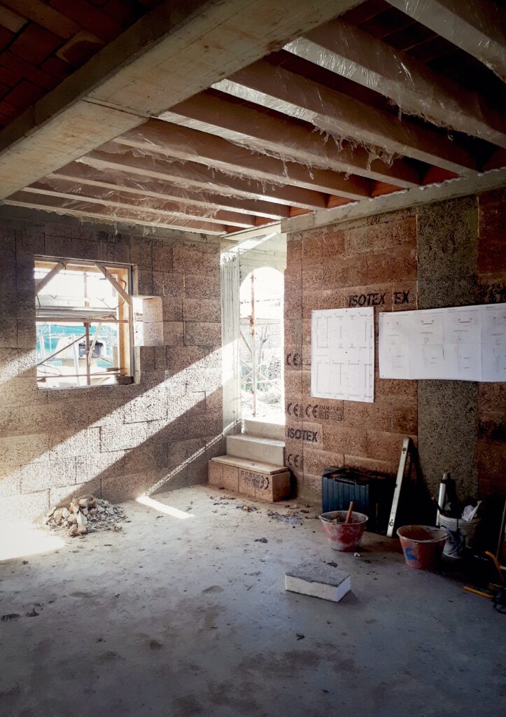 La pianta originaria dell’edificio risalente alla fine dell’800, è stata in parte modificata. Sono state mantenute e ampliate le aperture finestrate e gli accessi; le grandi bucature del piano primo, che in origine si affacciavano su una loggia aperta, oggi illuminano dall’alto la scala rivestita in rovere. Al piano terra, inizialmente adibito a magazzini e stalle, vi si accedeva tramite un locale voltato con due grandi aperture ad arco disposte frontalmente.